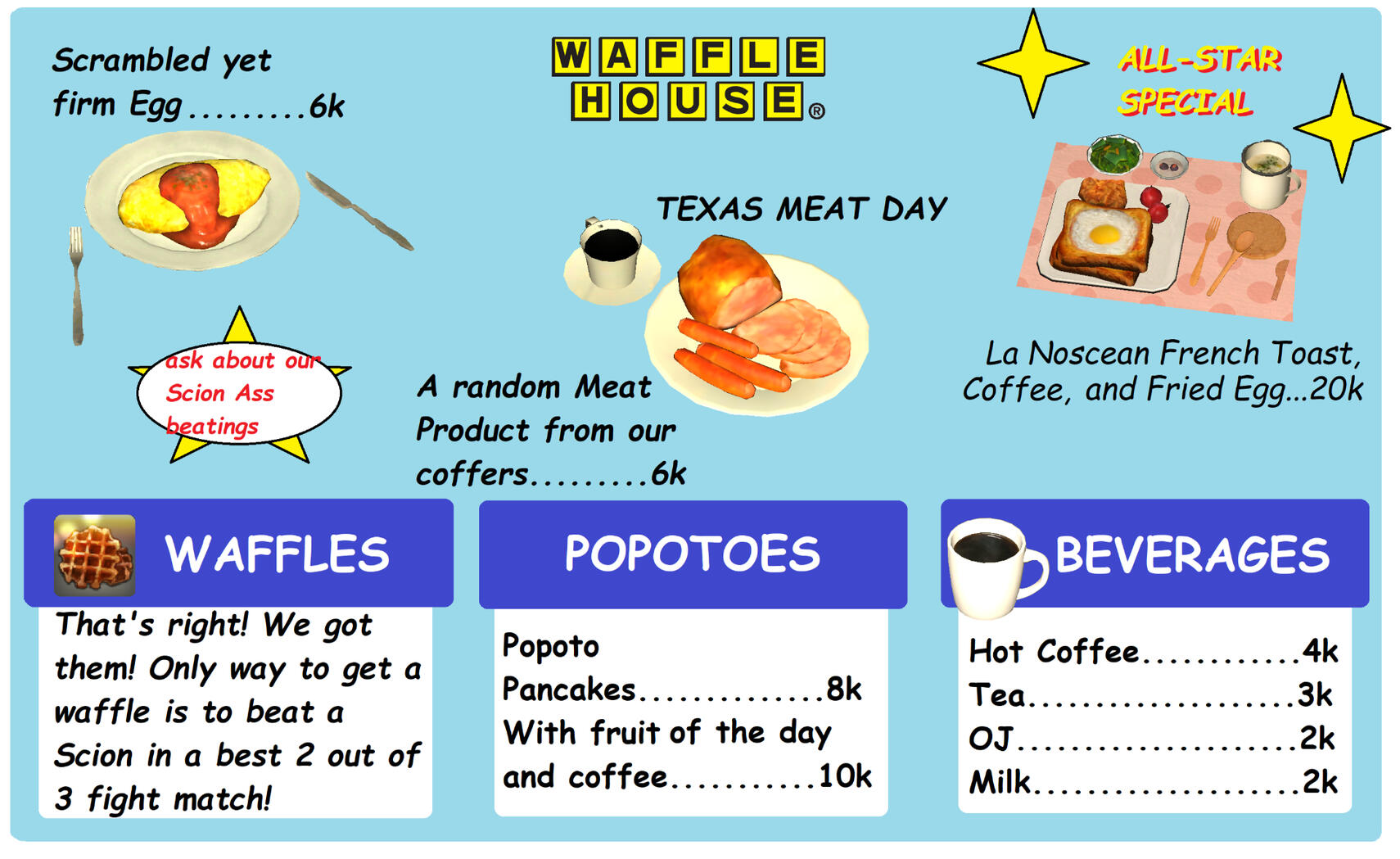 2.) All duels will commence downstairs in the arena, with your choice of a Scion Waffle House staff member or consenting duelist.